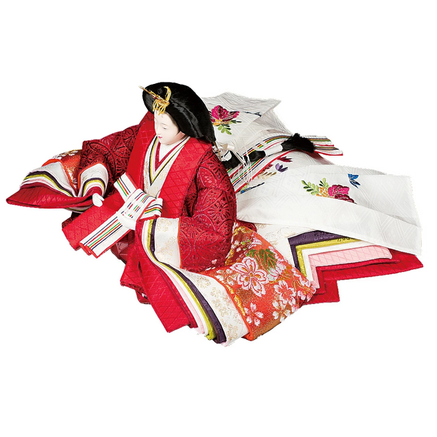 三人官女にも上品な風合いに着せ付けて仕上げました。